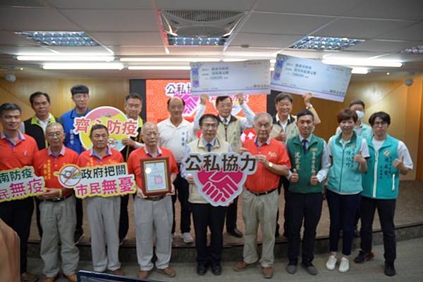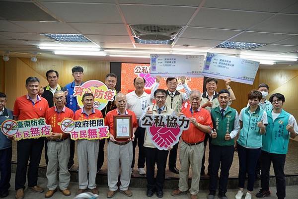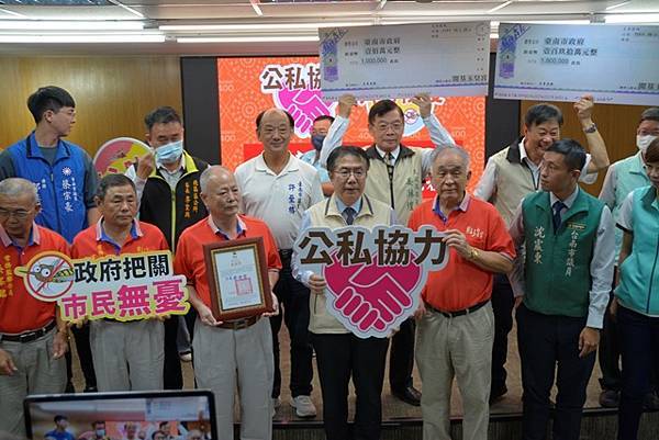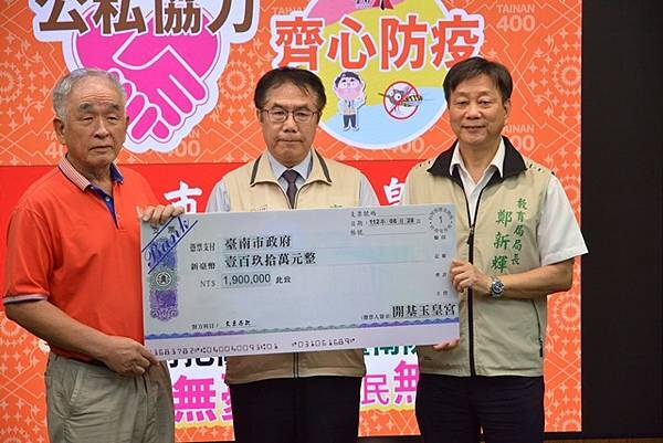 【柿子日報記者李玲/台南報導】台南市開基玉皇宮捐款290萬元,協助台南市用於防疫工作和照顧弱勢學子向學,台南市政府今(28)日於永華市政中心舉辦記者會,由市長黃偉哲代表接受並回贈感謝狀,對開基玉皇宮長期關心市政,以實際行動支持防疫、關心弱勢族群表達謝意,市議員許至椿、陳怡珍、沈震東皆到場表示關心。
