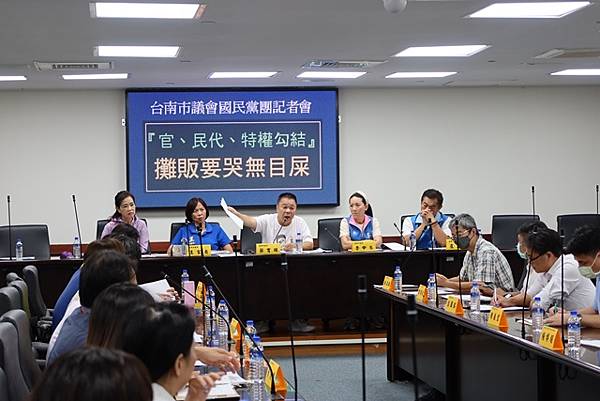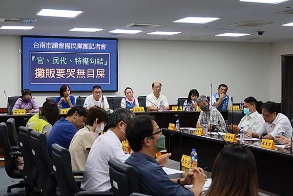 國民黨團書記長蔡育輝、王家貞、林美燕、李中岑、許至椿、盧崑福、蔡淑惠今天齊聚解決原大東夜市攤商何去何從議題,召開「官、民代、特權勾結、攤販要哭無目屎」記者會,邀集大東夜市自救會代表和經發局市場管理處、財稅局、交通局、警一分局、政風處等市府官員出席。