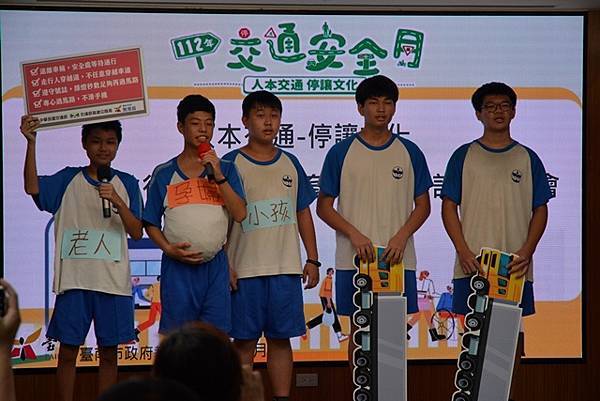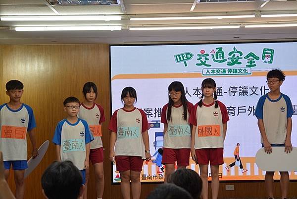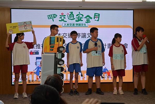 這場記者會開場由下營國中學生以英語、台語、國語演出交通安全行動劇,生動有趣的演出帶來笑聲連連。市長黃偉哲也與下營國中師生及多所學校代表共同宣誓,將努力提升市民交通安全意識,全力推動「人本交通-停讓文化」。