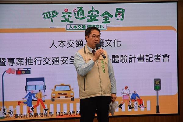 黃偉哲市長上任後對維護學童交通安全視為重中之重,配合中央「人本交通-停讓文化」政策,對學生通學安全的軟硬體投入不遺餘力;在硬體方面,為維護孩子通學安全,透過跨局處合作,爭取通學步道改善經費逾2億3仟萬;在教育宣導方面,全面推動交通安全課程及交通安全月宣導活動,並整合公私立資源、大台南交通教育主題館體驗課程等管道,由宣導、體驗及日常生活中落實交通安全教育,從小培養學生良好的用路習慣。