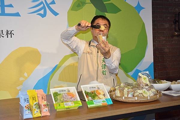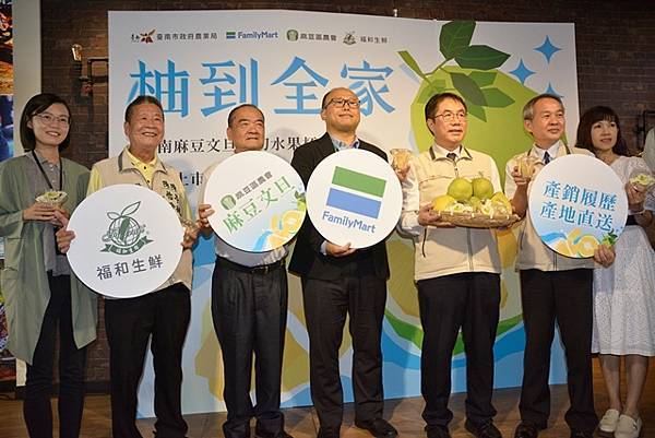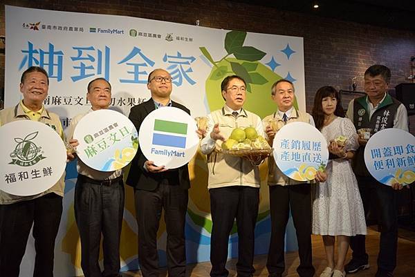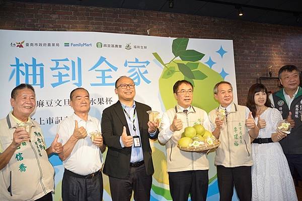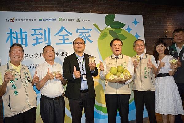 台南文旦有口皆碑,市府今(12)日於全家台南尊南店舉辦麻豆文旦鮮果杯上架記者會,市長黃偉哲親自製作文旦沙拉賣力促銷,包括福和生鮮董事長邱進福、全家便利商店生鮮採購資深經理陳友和、麻豆區農會總幹事孫慈敏、南市府農業局長李建裕皆一同共襄盛舉,鼓勵民眾到全家,便捷享用當令新鮮文旦。