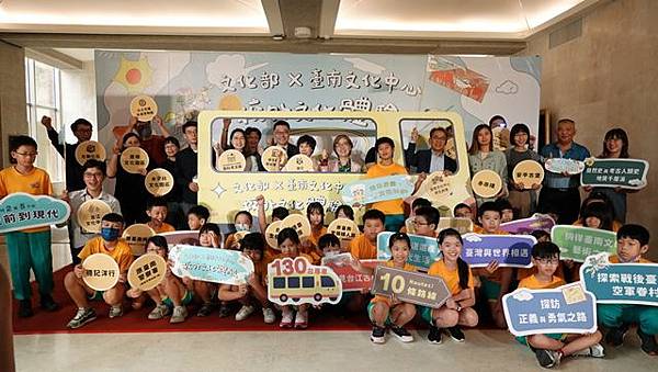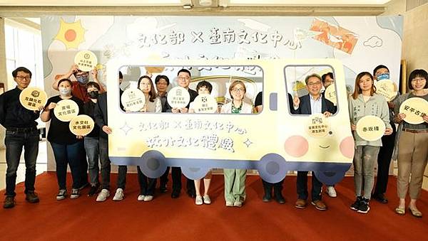 記者會最後,由臺南市文化局謝仕淵局長,開出文化體驗專車,帶領著今日與會的文化館舍與貴賓,象徵從這個月開始,一路到明年的五月,10條路線,130輛次專車,帶著成長的孩子,一起順著歷史長河而下的文化之旅。