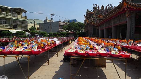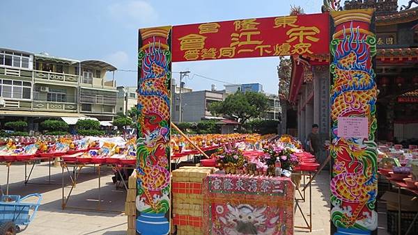 今天癸卯年9月15日東隆宮舉辦慶成謝土祈安儀式,叩謝土府,特別敦請(太上三五都功經籙玉府輔佐仙官 、知北斗九皇宮、兼雷霆酆岳事、吳羅暉道長)主持隆重法事科儀前晚深夜11時起鼓敬拜上蒼、叩謝神恩,緊接者昨天上午8時起舉辦各項科儀,下午1時普渡起香,三寮灣本庄各角頭廟宇及來自十方善信踴躍參贊普渡,擺設桌數達3000桌擠滿東隆宮廣場以及庄內各角落,各項供品琳琅滿目場面盛大,造成交通阻塞,出入行車寸步難行,為地方庄頭掀起熱鬧滾滾