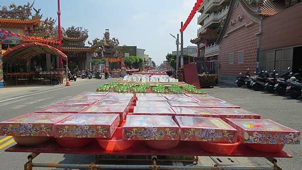 【柿子日報記者李玲/台南報導】以「王船祭」聞名的台南市北門區三寮灣東隆宮,今天舉辦各項重建、廟頂翻修等工程慶成謝土大典,十方善信踴躍參加普渡大拜拜,擺設桌數達3000桌擠滿庄內各角落,供品琳琅滿目場面盛大,董事長侯正仁表示,其中施食儀式由廟方提供美金1元100張的紅包,更具突出亮點,下午7時法事圓滿施放煙火宣告圓滿結束。