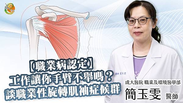 簡玉雯醫師指出,成大醫院統計近年來審核通過的勞工保險職業病案例,旋轉肌袖症候群是最常見的診斷之一,高風險的行業有泥水工、油漆工,還有工作中常常需要刷、洗、擦等動作清潔人員。