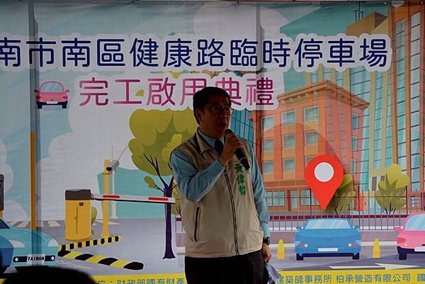 市長黃偉哲表示,本場鄰近臺南市健康綠洲特色公園,且位處三面臨路的完整街廓,周邊住宅密集,停車需求與日俱增,為改善區域停車問題,市府針對周邊公私有土地進行盤點,擇定此一國有土地,積極與財政部國有財產署共同合作闢建平面臨時路外停車場,並納入收費管理,不但可活化土地使用,也促進地方發展與改善市容環境,更打造出友善、優質的停車空間。