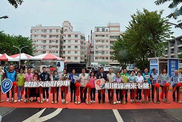 【柿子日報記者李玲/台南報導】臺南市南區文南里健康路平面臨時停車場已闢建完成,可提供107席汽車停車位,今(6)日由市長黃偉哲主持完工啟用典禮,再新增一處閒置土地活化案例,除完成環境整理改善原有髒亂與廢棄物堆置情形外,更可提供市民優質便捷的停車空間。
