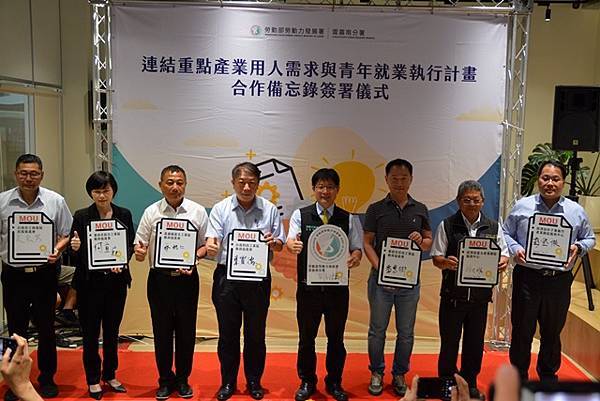 今日共有台灣科學園區科學工業同業公會、台南科技工業區廠商協進會、臺南市新吉工業區廠商協進會、社團法人中華民國南部科學園區產學協會、台南市工商發展投資策進會、臺南市官田工業區廠商協進會、嘉義縣嘉太工業區廠商協進會、經濟部朴子(兼義竹)產業園區服務中心、經濟部嘉太產業園區服務中心等9家產業公協會代表與會,共同解決國內青年就業問題,也攜手推動雲嘉南地區重點產業的蓬勃發展。