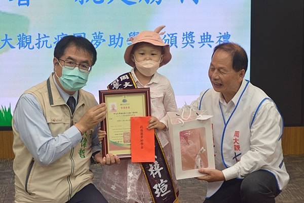 【柿子日報記者許明治/台南報導】周大觀文教基金會為鼓勵全國罹癌學生勇敢抗癌,努力向學,特別設置「抗癌圓夢助學金」,頒發罹癌學生2萬元助學金,從1997年至2023年,26年來已幫助1萬3772名學生,今(30)日基金會於台南市政府6樓記者發布室舉辦抗癌圓夢助學金頒獎典禮,由台南市長黃偉哲與周大觀文教基金會創辦人周進華、董事長郭盈蘭共同頒發助學金予台南6位抗癌勇士,嘉許這些小勇士不向病魔低頭,反而勇於築夢、活出生命的色彩。
