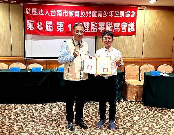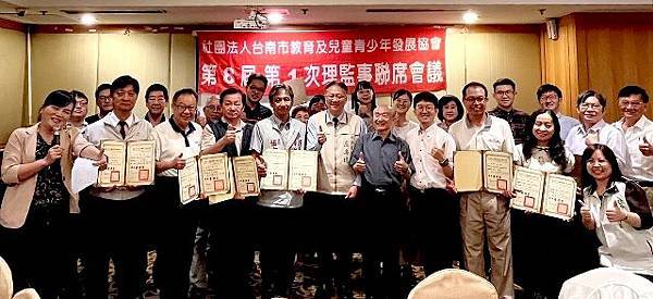 【柿子日報記者李玲/台南報導】社團法人台南市教育及兒童青少年發展協會,昨天舉辦第八屆第一次理監事聯席會議,並進行新舊任理事長交接,社會局長盧禹璁親臨頒發當選證書,祝賀新任理事長施斌惠子承父業義務做善事做好事。
