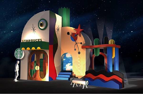 位在台北時代百貨2樓的夢廣場,星巴克今年以「奇幻咖啡小屋」為主題,運用巴塞隆納的超現實意象,以呈現富有詩意與想像力的藝術作品,進入奇幻小屋,可欣賞到千變萬化的線條與自由奔放的色彩,享受繁忙生活中的一片靜謐美好。奇幻萬花筒於活動期間內,平日一至五 18:00-19:00,每週六日16:00-20:00開放進入小屋體驗奇幻萬花筒,欣赏藝術與咖啡結合的符號主題影像。