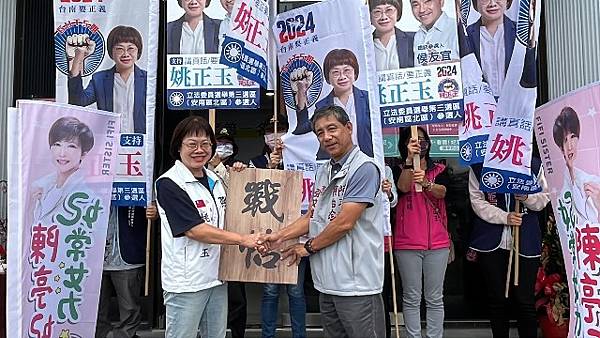 姚正玉上午10點由競選人員陪同前往陳亭妃競選總部,由服務處主任張文雄出面接下戰帖。