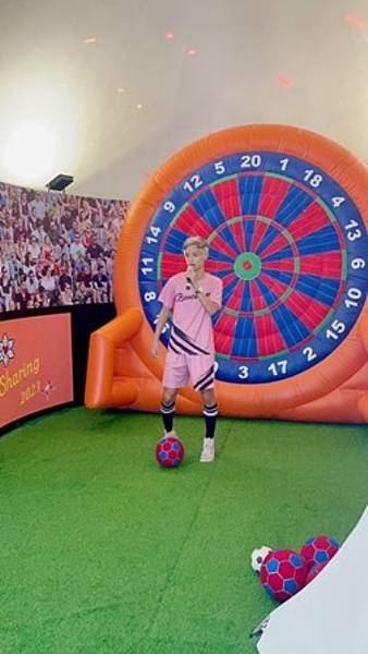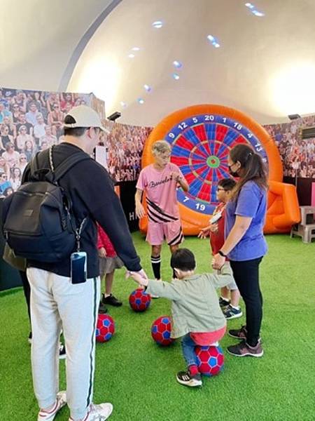 HIS CAFÉ足球競技場,成人飛鏢足球和兒童洞洞足球門歡迎全家大小一起來挑戰。高雄夢時代提供