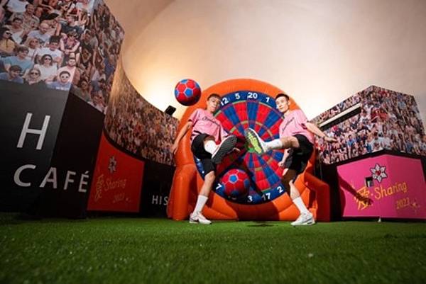 HIS CAFÉ足球競技場,有成人飛鏢足球和兒童洞洞足球門挑戰,不僅讓全家大小都能充分享受足球樂趣外,還有機會獲得隨機口味的一整箱HIS CAFÉ和限量粉色球衣。