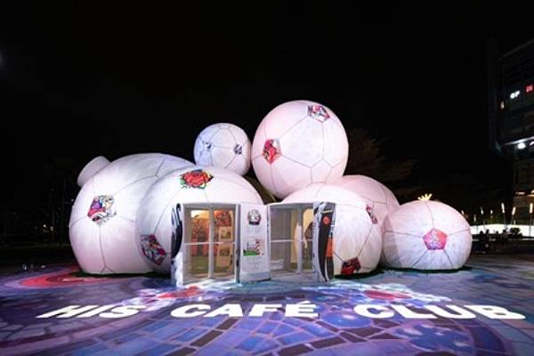 走進HIS CAFÉ足球嘉年華,映入眼簾的是以多邊球體組成的前衛設計,現代藝術作品更以馬賽克花窗的形式巧妙地妝點在足球的黑色五邊形上,這是一個巨大的現代藝術裝置,讓參與者不僅能感受到足球的樂趣,還能沉浸在現代藝術的氛圍中。