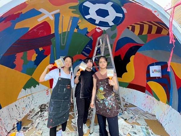 在國立高雄大學建築學系碩士班同學親手繪製的夢幻球池體驗展現巴塞隆納的奔放風格。