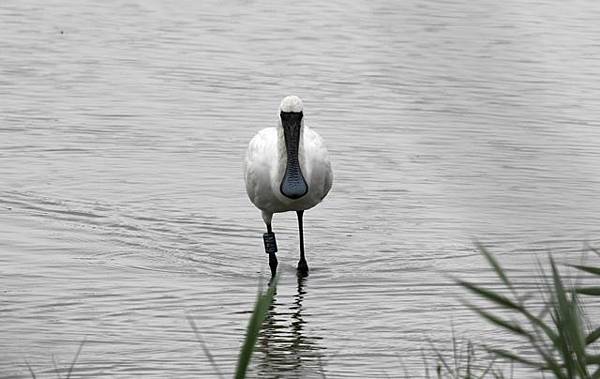 19日上午台南市生態保育學會副總幹事黃永豐,在北門區井子腳附近鳥調時,發現1隻身上有背帶有發報器的黑面琵鷺,仔細往腳環一看,竟然是去年全球黑琵普查日救傷繫放的黑面琵鷺編號N49,拿起照相機猛拍紀錄。