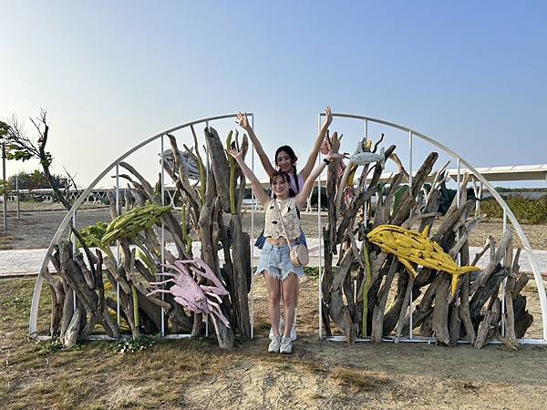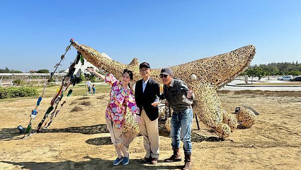 另外,雲嘉南管理處執行「向海致敬-海岸清潔維護計畫」,清理出海岸漂流木、蚵架、浮球等海漂廢棄物,製作4座海廢地景藝術。作品「鯨視紀錄」是藝術家與在地居民共同合作完成,成串的蚵殼、大大小小浮球象徵海面跳躍揚起之浪花,尾巴有著散落的海廢物、等待主人穿起的藍白拖鞋及小朋友再次堆起城堡的玩具等,記錄著人們對待海洋的點點滴滴。其他還有「生生不息」、「海底新世界」、「愛情的算計」等主題,海廢藝術讓淘汰的海漂廢棄物,也能華麗變身藝術作品。