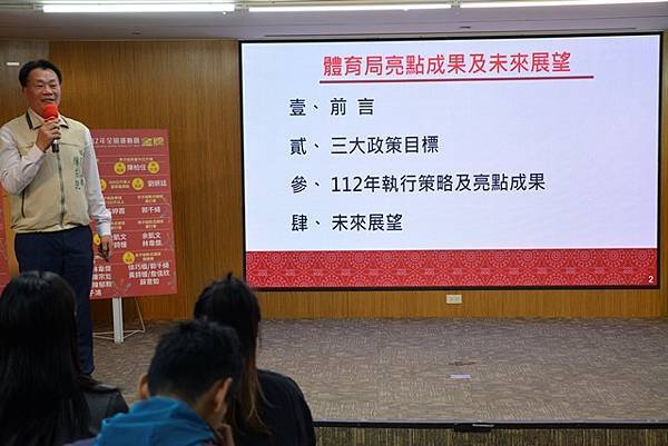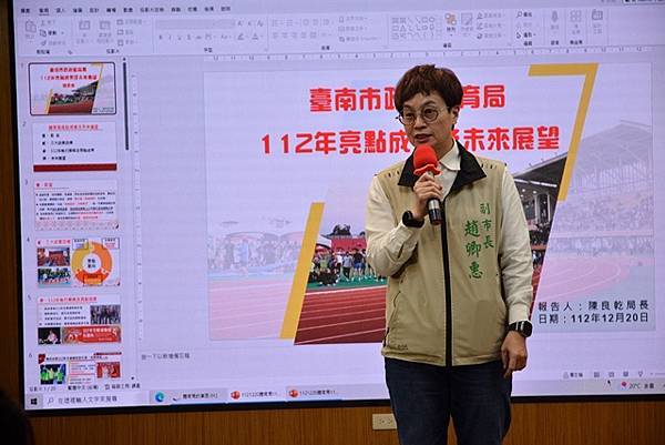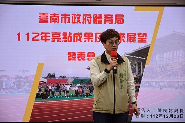 體育局陳良乾局長進一步表示,體育局成立以來首要階段任務已完成,明年適逢臺南400,體育局亦積極辦理「運動文化嘉年華」、「棒球歷史展」及「馬拉松挑戰賽」等系列活動,結合時下互動體驗科技,加強推展運動風氣並帶動觀光效益。另外透由今年全運會辦理之經驗傳承,再次展望114年全中運,屆時將集結市府各局處資源全力籌辦,續創榮耀。