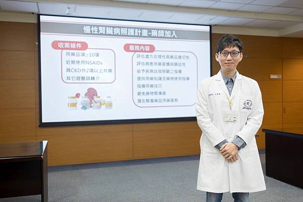 成大醫院的腎臟病藥師門診,針對慢性腎臟病stage 3b、4、5期病人,並且符合下列其中一項條件:用藥品項大於10項、近期使用非類固醇消炎止痛藥(NSAID)、具慢性腎臟病之外2項以上共病,或是其他原因經由醫師轉介之病人,提供專業的藥事照護。藥師會評估處方合理性與病人用藥習慣、給予疾病自我照顧指導及建議、提供用藥知識與藥物使用技巧、避免藥物對腎臟造成損害。成大醫院腎臟病藥師門診至2023年底服務約1,300人次,藉由提升病人對藥物的認知,改善服藥順從性,並避免病人暴露於NSAID等高風險腎毒性藥物中。