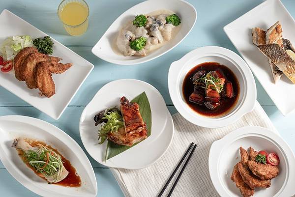 為了有別於早餐的菜色,元素平日早午餐特別加碼台式、中式與異國風味的熱食,包括:台式古早味的阿婆紅燒肉、阿爸滷豬腳;中式的回鍋肉、桂竹筍炒豬肉;或是創意料理的苦盡肝來,是將苦瓜與豬肝分別切片川燙後調味,再組合一起,先吃苦瓜再吃豬肝,風味別具特色。珍心香拌是雞心與雞胗先滷後炒的完美結合,讓內臟食材華麗轉身變成美味佳餚,讓您吃出滿口的驚喜。以上菜色皆為輪流出菜,實際品項依餐廳現場供應為主。