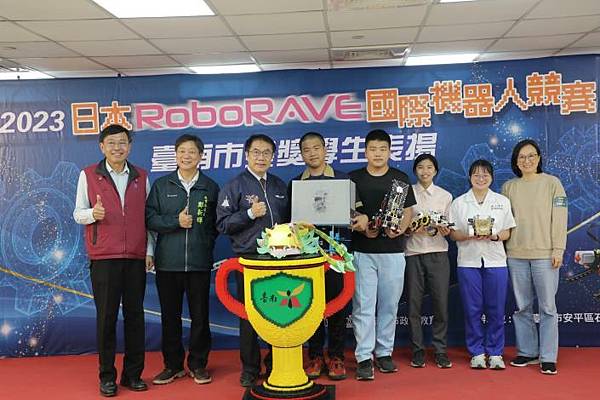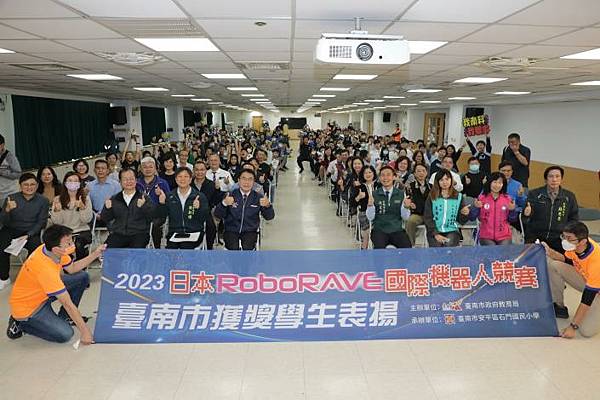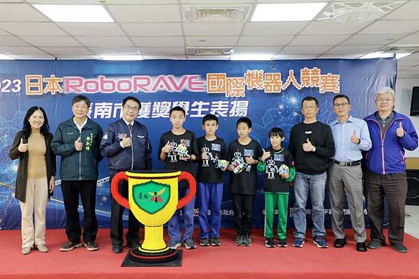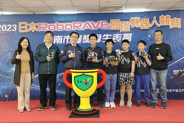 【柿子日報記者李玲/台南報導】去(112)年在日本舉辦的「2023RoboRAVE國際機器人大賽」圓滿落幕,臺南市代表隊成績相當亮眼,共由37所高中、國中、國小組成參與競賽,囊括11金13銀14銅等38面獎牌,展現臺南市優異的科技教育成果與實力。市府今(4)日舉辦表揚典禮,市長黃偉哲感謝獲獎團隊在國際上為南市爭取光榮,市議員沈震東也到場表達祝賀。