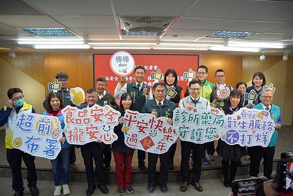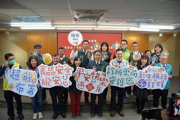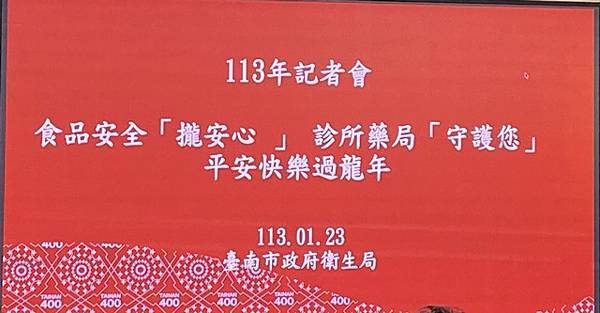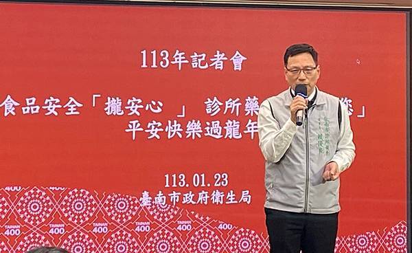 【柿子日報記者李玲/台南報導】 因應農曆春節來臨,為讓市民平安快樂過龍年,臺南市政府衛生局今(23)日召開「食品安全「攏安心」 診所藥局「守護您」 平安快樂過龍年」記者會,黃偉哲市長及診所藥事食品等相關公會理事長共同與會,守護市民平安快樂過龍年!記者會中公布春節食品稽查情況、新冠XBB疫苗接種率、醫療院所春節開診情況,讓市民安心吃安心過年。: