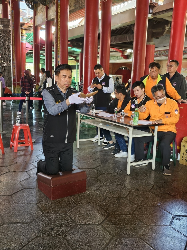 (柿子日報記者 鄭志成/台南報導) 台南市北門區南鯤鯓代天府是王爺總廟,一年四季香火鼎盛,大年初一除有舉辦抽國運籤重要科儀,每年大年初四,不但是民間各行各業開工、開市的好日子,也是民間信仰接神的好時辰,王爺總廟南鯤鯓代天府很重視接神的科儀,由董事長率董監事及總幹事與各組室主管於大年初四 假五王殿、萬善堂舉行接神團拜儀式,今年擇於本(12)日上午11時開始新春接神團拜及開爐選拔,本年共分九組開爐,開爐神尊分別為李、池、吳、朱(含八路財神)、范府等五府千歲、萬善爺、福德爺及虎爺、觀音佛祖及中軍府、註生娘娘及月老神君等九組開爐神佛,請筊地點分別在深井拜庭、中軍府走廊、福德、城隍爺走廊、萬善爺堂及娘媽殿舉行,請筊人由2至3名現任董監事或曾擔任廟方神職幹部擔任,不論是記筊人或拾筊人均有任務分工,職司明確,確保擲筊杯數確認及登載正確,杯選出各神佛開爐爐主,各爐主可請回尊奉神佛供奉1星期,各善男信女可於年前登記開爐杯選,開春大年初四參加開爐杯選儀式,8組十四尊神名共5575人次參加。