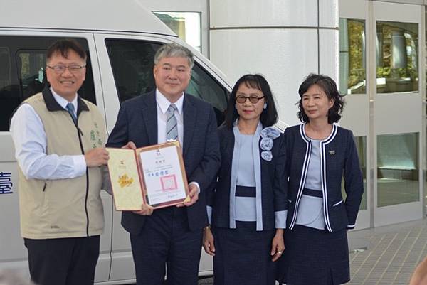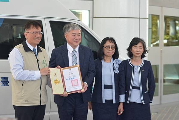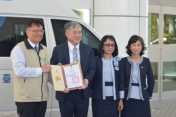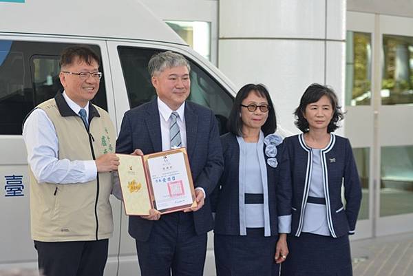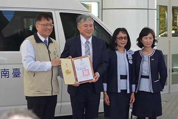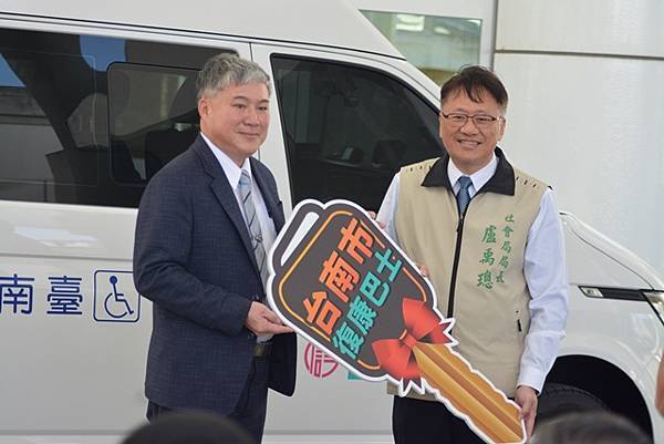 【柿子日報記者李玲/台南報導】為響應臺南巿「照顧弱勢優先」之施政理念,有限責任臺南第三信用合作社用實際行動關懷臺南弱勢民眾,捐贈1台復康巴士予臺南市政府,社會局今(21)日下午於永華市政中心2樓廣場舉辦捐贈儀式,黃偉哲市長在社會局盧禹璁局長陪同下代表受贈並回贈感謝狀給王定國理事主席,感謝有限責任臺南第三信用合作社發揮企業社會責任回饋在地鄉親的善舉,市議員朱正軒本人及立法委員王定宇、林俊憲、林宜瑾、市議員楊中成、周嘉韋、蔡宗豪、林冠維等服務處代表都到場參與。