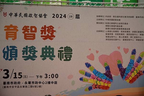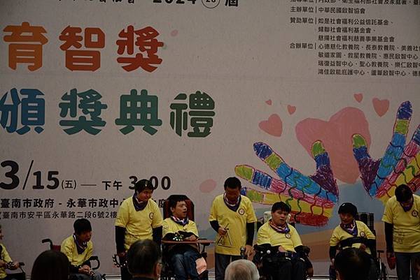 黃偉哲市長表示,照顧及教導身心障礙者並不容易,感謝各領域教保員運用創意教學提升身心障礙者生活自理能力,讓身心障礙者能一天比一天更進步;中華民國啟智協會係甘惠忠神父創立,甘惠忠神父長年服務於臺南市瑞復益智中心、德蘭啟智中心暨伯利恆社會福利基金會,臺南可謂是身心障礙及發展遲緩兒童早期療育發源地,育智獎選在臺南市辦理,結合臺南400別具意義,更讓臺南增添一股溫暖及愛的力量。