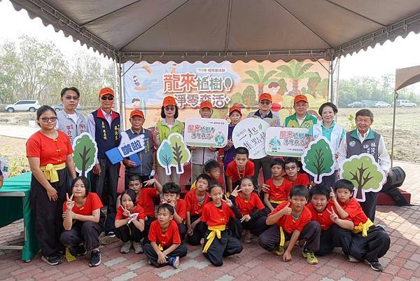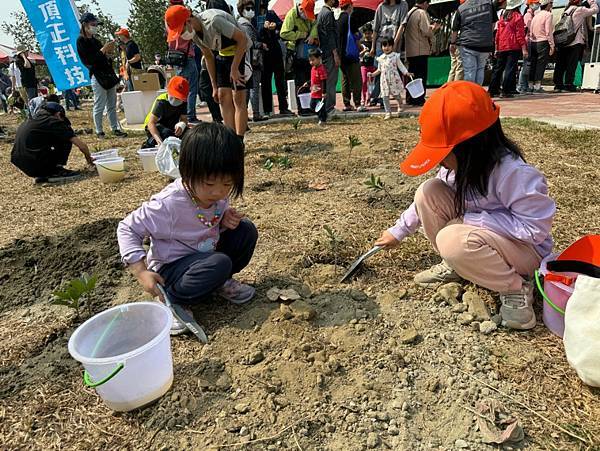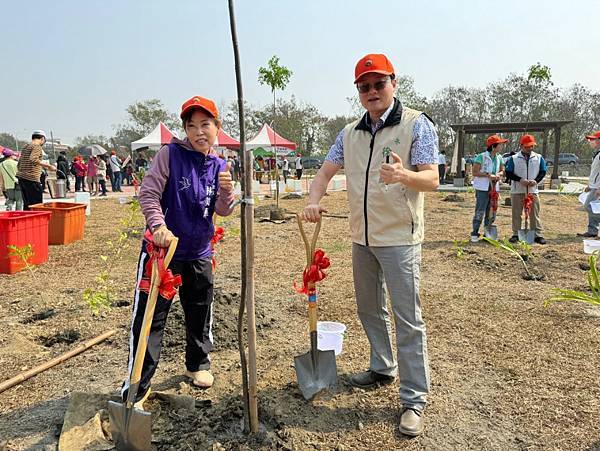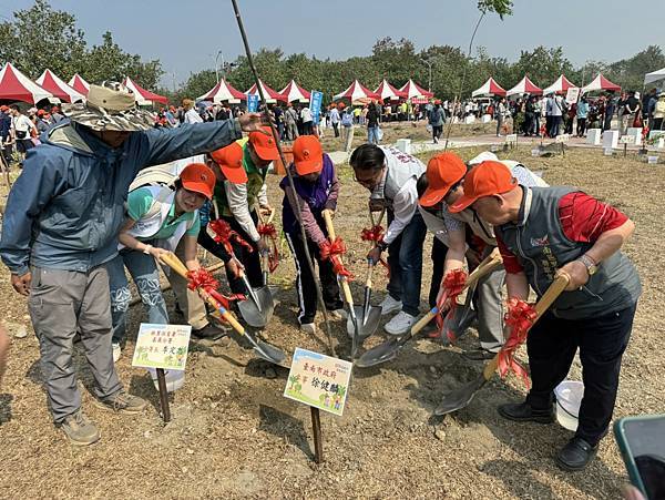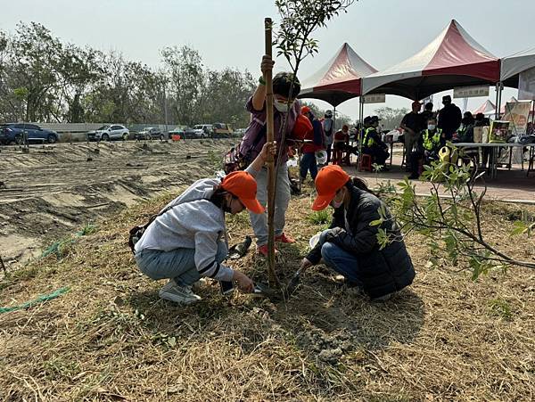 現場由臺南市政府參事徐健麟、林業保育署嘉義分署副分署長李定忠帶領陳亭妃立委特助李介文、林俊憲立委主任曾俊仁、林美燕議員、李啟維議員、蔡淑惠議員主任羅再順、南區區長蕭琇華、鯤鯓里里長陳金江等多位貴賓與民眾共同植樹,攜手於近黃金海岸沿線內陸公園栽植楝樹、台灣海桐、厚葉石斑木、草海桐等多元臺灣原生植物,共同響應2050淨零碳排 臺南齊行。