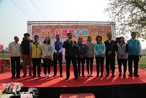 將軍區砂質鹽分土壤種出的紅蘿蔔品質優良,被譽為胡蘿蔔故鄉,農曆春節過後開始採收,木棉花也相繼盛開,將軍區公所16日在苓仔寮木棉道舉辦「2024將軍區紅蘿蔔木棉爭鮮搶豔同樂會」,臺南市長黃偉哲邀請民眾龍來將軍拔蘿蔔、賞木棉,行銷在地好滋味。
