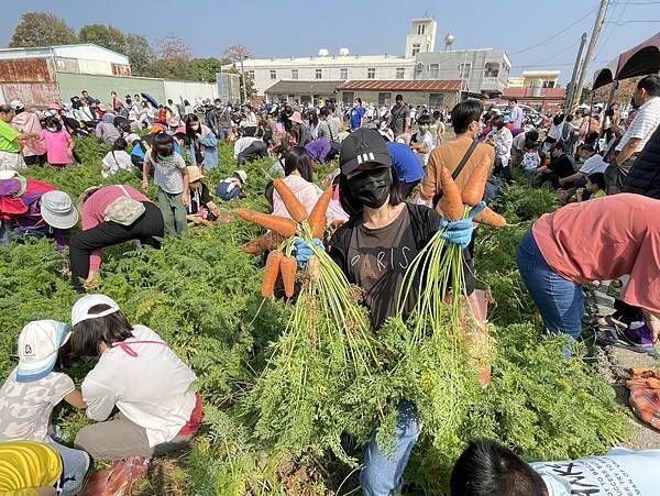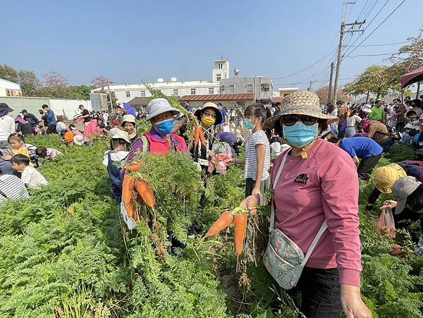 大人小孩都喜愛的拔蘿蔔體驗,二梯次總計550個名額今年仍是一開放報名就秒殺。活動當天區公所一宣布開拔,不分老少湧入蘿蔔田,人手一袋,1.2分田地迅速拔光,場面相當熱鬧。