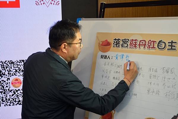 今日出席記者會的有臺南市直轄市糕餅商業同業公會、台南市糕餅商業同業公會、大台南廚師業職業工會、臺南市餐盒食品商業同業公會等公會及食品業者的代表齊聚一堂,共同宣示配合,齊心協力落實蘇丹紅自主管理,為民眾提供安心的食安環境。