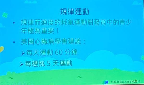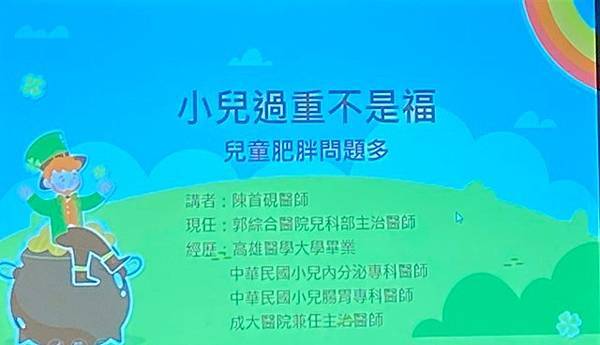 最後提醒大家,兒童的體重控制,最重要的還是需要家長的關心和投入,在兼顧成長發育的目標下,從小就由均衡飲食、調減熱量及適量體能活動做起。可是如果小朋友體重還是增加快速(如一年超過4公斤)、6歲時BMI 大於19或是12歲時BMI大於24,建議每年可給小兒科醫師評估檢查是否有慢性代謝疾病的風險,及早發現,及早處理。