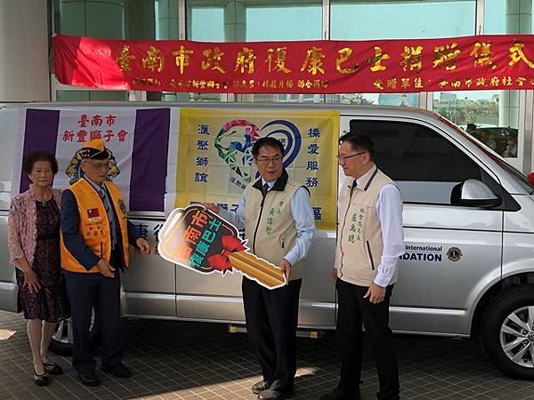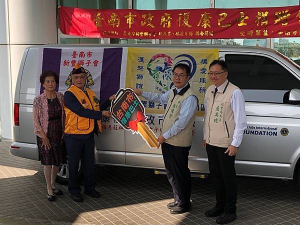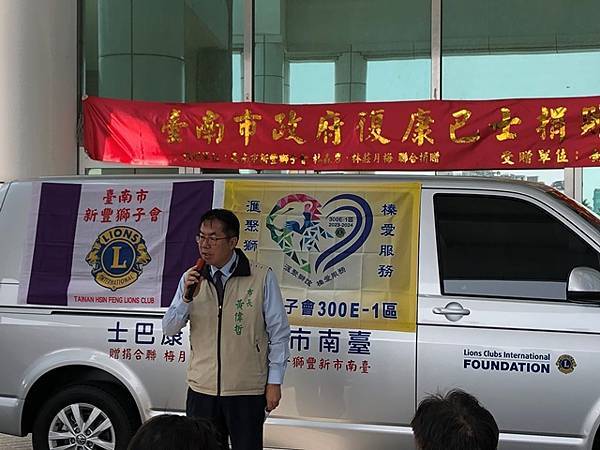 黃偉哲市長感謝新豐獅子會提供身障朋友交通接送資源,黃市長表示,臺南市身心障礙人口數截至目前有9萬9,677人,其中肢體障礙人數共2萬9,822人,佔身心障人數30%,有許多身障朋友需要交通接送協助。目前全市有155輛小型復康巴士及1輛中型復康巴士,每年平均可提供25萬趟次以上服務,這些車輛多數由民間企業、團體或市民個人所捐贈,市府將捐贈車輛使用於汰換年限已逾10年以上之老舊復康巴士,以保障使用民眾之行車安全。