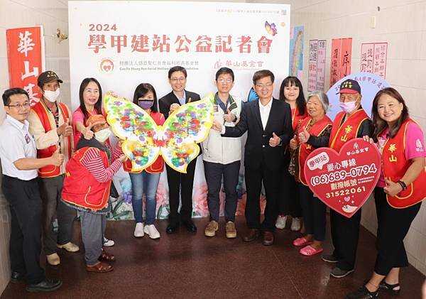 開場由宅港國小太鼓隊帶來氣勢磅礡的戰鼓表演揭開序幕,華山基金會郭慧明副秘書長、財團法人感恩聖仁基金會鄭明輝董事長、陳宗賢執行長、謝舒凡市議員、台南市社會局林建南秘書、宅港國小林維智校長等來賓攜手一同揭牌、為新站剪綵,宣布學甲站正式成立,最後來賓與長輩一同彩繪蝴蝶,期許新站點提供更完善的服務,讓更多長輩像蝴蝶ㄧ般,自在優雅地度過晚年。