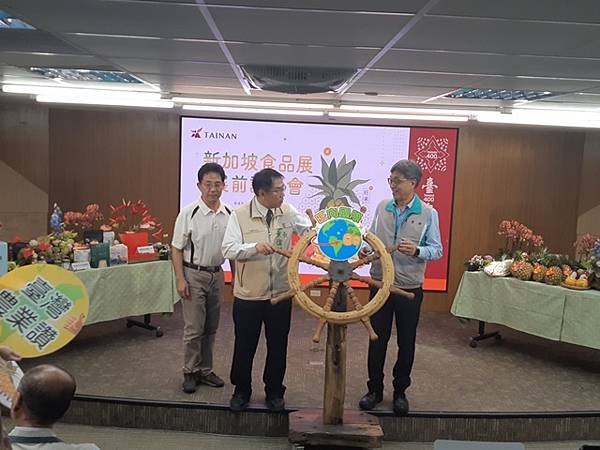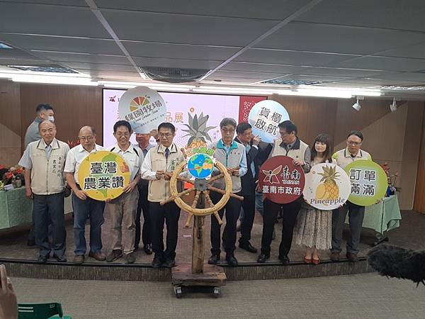 【柿子日報記者李玲/台南報導】即將於4月23日開幕的新加坡食品展(FHA)是東南亞最具規模的專業食品展,同時也是食品業者拓銷國際市場重要的跳板,臺南市政府繼去年芒果,成功打進新加坡蔬果品質最高端的CS Fresh超市,今(15)日農業部代理部長陳駿季及臺南市長黃偉哲連袂出席前進新加坡食品展記者會,宣布臺南2貨櫃的新鮮鳳梨、蔬果、農水產加工品正式啟航,預祝參展的臺南市5家業者透過東南亞經濟貿易中心新加坡,將拓銷觸角延伸到亞太地區,訂單滿滿、業績長紅。農糧署南區分署長陳立儀、市議員沈震東也到場支持。