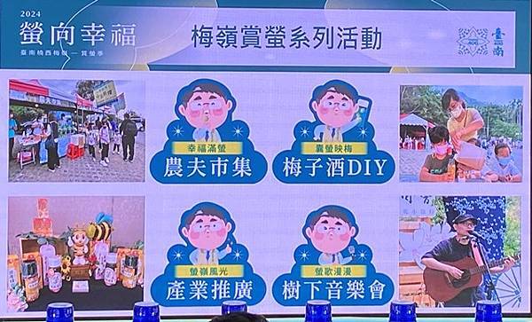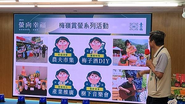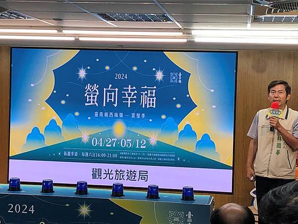 【柿子日報記者李玲/台南報導】每逢春夏交替之際,是火金姑出沒的時期,臺南市政府觀光旅遊局今(16)日舉辦「2024臺南楠西梅嶺賞螢季」「點亮幸福螢光」,邀請各地好友一起來楠西梅嶺欣賞美麗的「螢」河,並宣布賞螢季開跑。記者會現場也設置楠西區農特產品展示專區,展示包括在地創生產業-森果川自造所的梅子氣泡酒及果乾、曾榮獲「全國蜂蜜評鑑特等獎」及「全國模範農民」的昇鋒蜂場的蜂蜜及蜂製品、揚梅吐氣梅子專賣店和梅嶺食品中心的各式梅製產品,並特別邀請「梅嶺文川古梅庭園咖啡」於現場示範手沖楠西在地生產的咖啡,提供美式黑咖啡、梅子綠茶等飲品,讓大家彷彿一秒置身梅嶺現場。