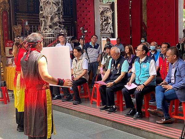 《臺南400》鼓動臺南、龍躍世界等系列活動,於17日上午在安平開台天后宮舉行記者會,天后宮主委盧友禮、文化局副局長林韋旭、市長室機要秘書陳宗明、社會局秘書呂維胤、市議員林美燕、盧崑福、李啟維、安平區區長蕭泰華等人參與。