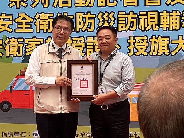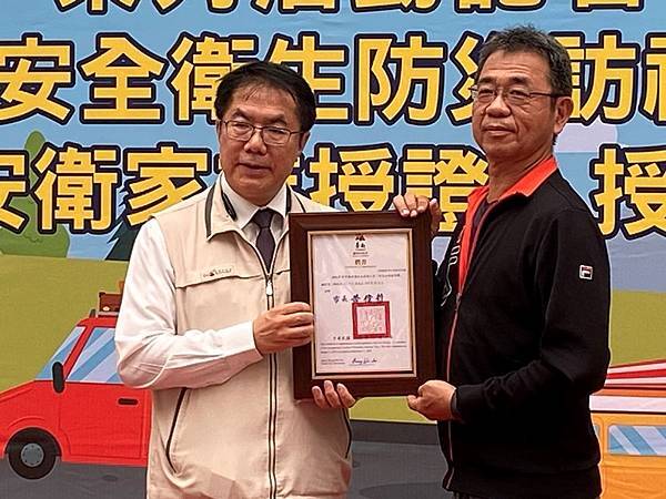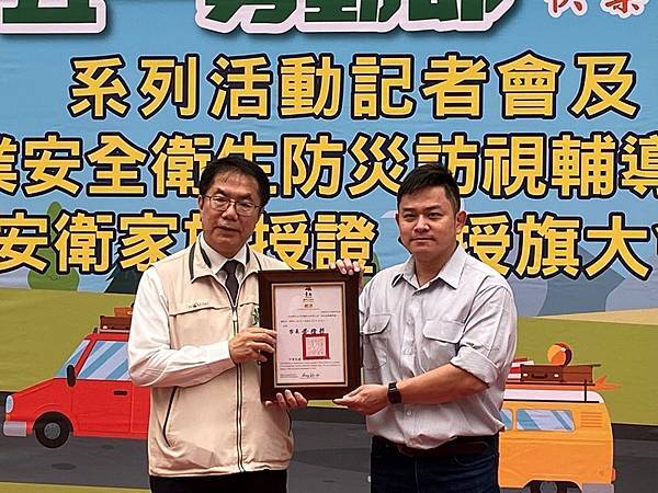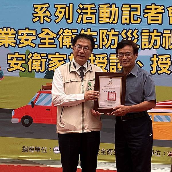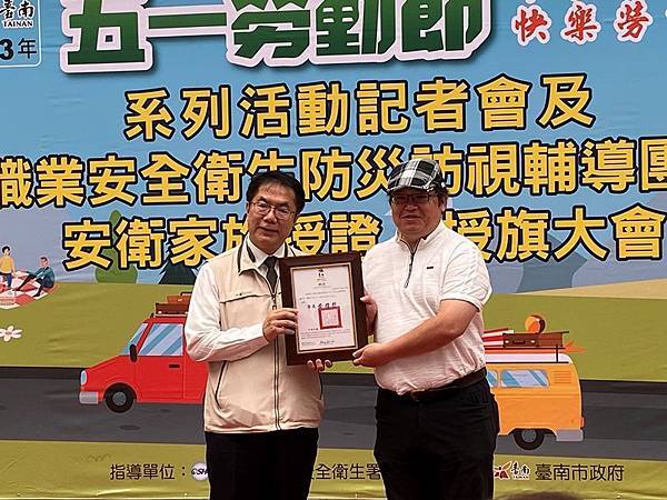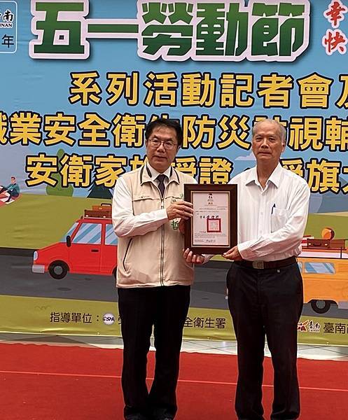 此外,昨(28)日恰逢世界職業安全衛生日(原稱國際工殤日),市府團隊長期致力推動職業安全衛生工作,今天也在現場授旗新成立安衛家族「大亞電線電纜股份有限公司」、「新舜營造有限公司」等兩家核心企業,期望更多事業單位投入落實職安衛生;此外,也針對職業安全衛生防災訪視輔導員進行授證,期盼每位輔導員能深入職場每一個角落,帶給事業單位及勞工朋友正確的職場防災共識。目前台南市已成立39個安衛家族,有超過800個事業單位參與,以大廠帶小廠的方式,保障勞工安全健康。