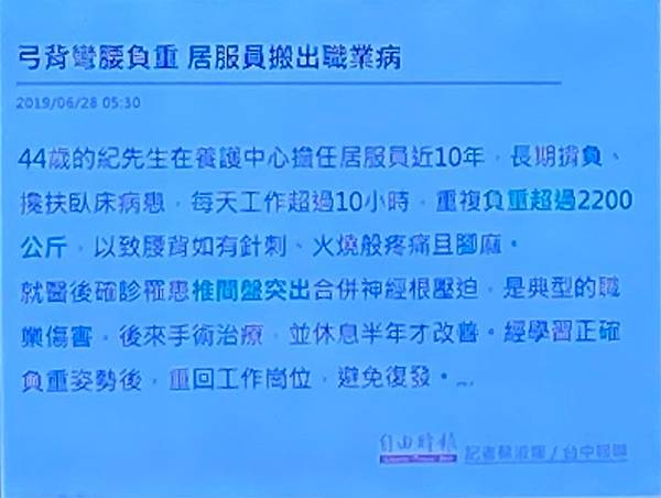 【柿子日報記者李玲/台南報導】61歲的王先生從事搬家工作40餘年,因為下背痛合併下肢麻木就醫,診斷為罹患「腰椎椎間盤突出合併神經壓迫」,無法再長期搬運重,失去工作和收入。王先生認為疾病與工作有關,寄送一般診斷書至勞保局申請傷病給付,而勞保局回函請求說明工作中的危害暴露,包括:工作內容調查、職歷報告書、工作危害實況照片等。王先生不知道如何補充資料和說明,原本想放棄申請,工會人員介紹至成大醫院職業醫學科門診,由醫師協助評估病況和收集資訊,再開立詳實記載暴露情形的診斷書,讓王先生的傷病給付申請順利通過。