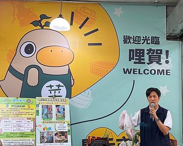 黃偉哲表示,「節能減碳、環保淨零」不應是時尚口號或遙遠目標,而是日常生活中就可以做到,邀請市民朋友們到市場買菜時自備購物袋,有效減少塑膠袋使用且助益垃圾減量,減輕對環境造成的負擔,減少碳足跡,也讓台南市容更美麗。