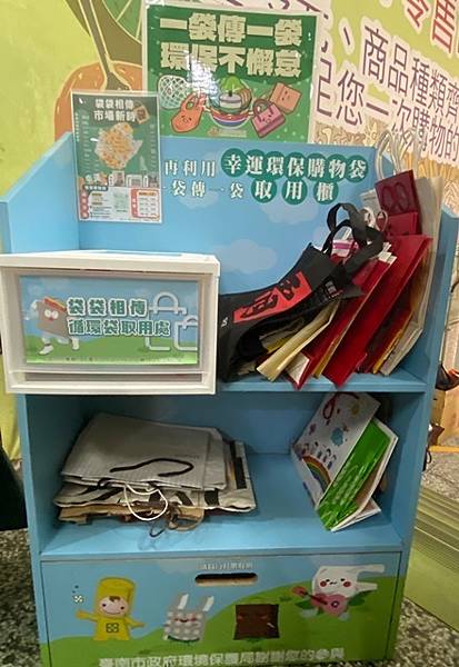 為從源頭減塑,鼓勵民眾重複使用購物袋,環保局積極推動設置「袋袋相傳」站點,號召民眾將家中多餘但堪用的紙袋、不織布袋或帆布袋等購物袋,進行回捐,落實資源循環使用。目前為止,已在本市量販店、超市、便利商店等場所設置「袋袋相傳」站點達167處;今(113)年環保局與市場處攜手,於公有市場推廣設置45處,公有市場設置率高達76%。
