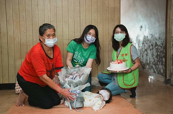母親節將至,創世基金會台南院來到邱媽媽家中,為她獻上由明新囍餅提供的母親節蛋糕與永生花禮,替從未度過母親節的她過個難忘的節日,也替不能言語的女兒表達感謝之情。邱媽媽感動又開心,看著女兒的眼神充滿溫情,她說:「從她1歲多開始,我就是這樣貼身24小時地陪伴在她身邊。」每次創世探望,她總是娓娓道出屬於母女倆的生命故事,母女之間獨特的眼神默契,盡在不言中。我們也在邱媽媽身上看見一個平凡的母親,卻能給出不凡、堅定的母愛。