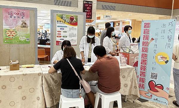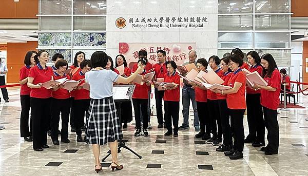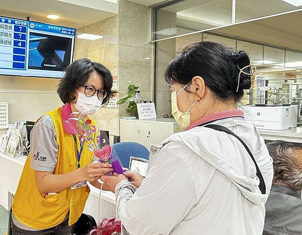 今年母親節送花活動結合器官捐贈宣導,讓民眾瞭解「愛」的旋律是珍愛生命與情感表達、「愛」的流動可以更寬廣。活動由台南市基督教女青年會鳳鳴合唱團以歌曲「天頂的星」及「童年」開場,喚起大家溫暖的記憶,接續帶領民眾透過「答題即可參加扭蛋機抽禮物遊戲」、「愛拍拍~拍照」活動,即刻紀錄愛自己的行動並傳愛感謝重要他人,也鼓勵民眾另外一種形式愛的行動—器捐簽卡,讓有盡的生命因愛而穿越與延續。同活動時段,另一批志工們至門診大樓各診區發送康乃馨關懷病友,讓病友和家屬因為溫馨祝福而有更多愛的流動及相互鼓舞,一起讓自己及周遭更幸福美好。