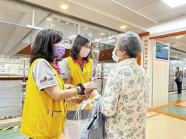 【柿子日報記者李玲/台南報導】今年的母親節在5月12日,成大醫院社工部暨志工團隊提前於5月10日(五)上午在門診大樓一樓大廳舉辦「溫馨五月情 成醫伴你行~母親節愛的宣言暨器捐宣導活動」,同時由志工們到各診區送康乃馨鮮花祝福病友,一起向辛勞的媽媽們說「母親節快樂」!