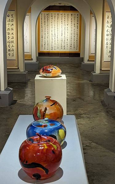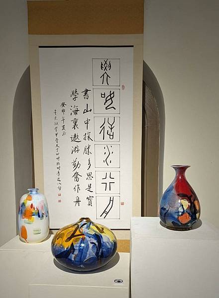 [當下想像書寫]一次性的創作線條與色彩表達作者內心直覺的想像,此次展出骨瓷釉彩是淬煉之後陶瓷作品的創作顛峰,花草舞動、山嵐勁風,是表現當代直觀書寫抽象趣味性的精采立體作品。