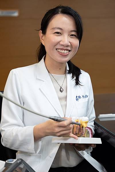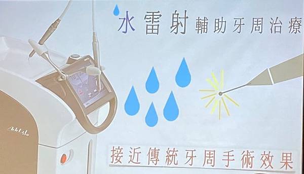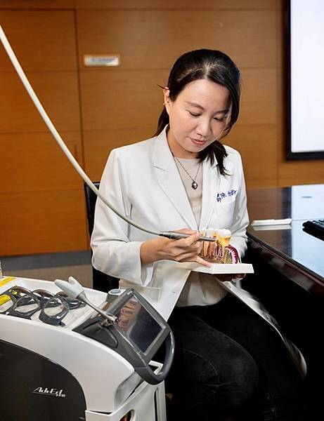 陳怡鈞醫師說明,雷射是新興的高端牙周治療輔助工具,其中水雷射牙周治療是利用水分子吸收雷射能量,可有效移除牙結石,同時具有滅菌、去毒素、活化組織促進自體修復和減輕腫脹疼痛、治療時聲音輕柔減緩治療壓力等特點。細小的雷射光纖可清創至深層囊袋和死角,降低病況進展至需行手術程度。微創介入也能減少術後牙齦萎縮和牙根敏感,提升治療效果,使整體治療更舒適。