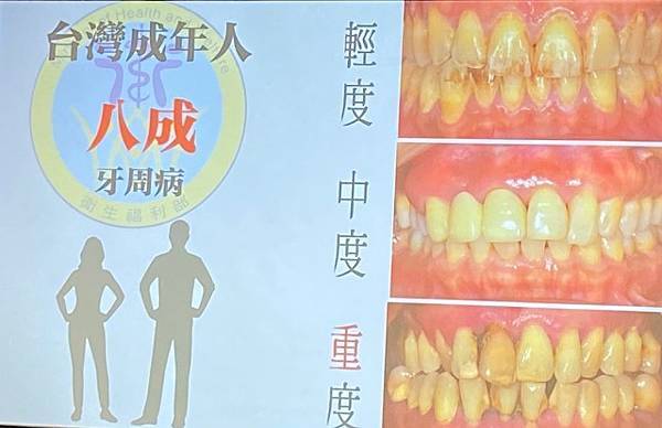 成大醫院牙周病科陳怡鈞醫師表示,牙周病是一個隱形殺手,主要病因是清潔不佳造成的牙菌斑累積。根據衛福部口腔衛生司調查顯示,台灣成年人牙周病盛行率高達8成,其中有一半處於嚴重的狀態。然而大多數牙周病患者直到中等或嚴重程度,因腫脹疼痛無法咬東西才就醫。